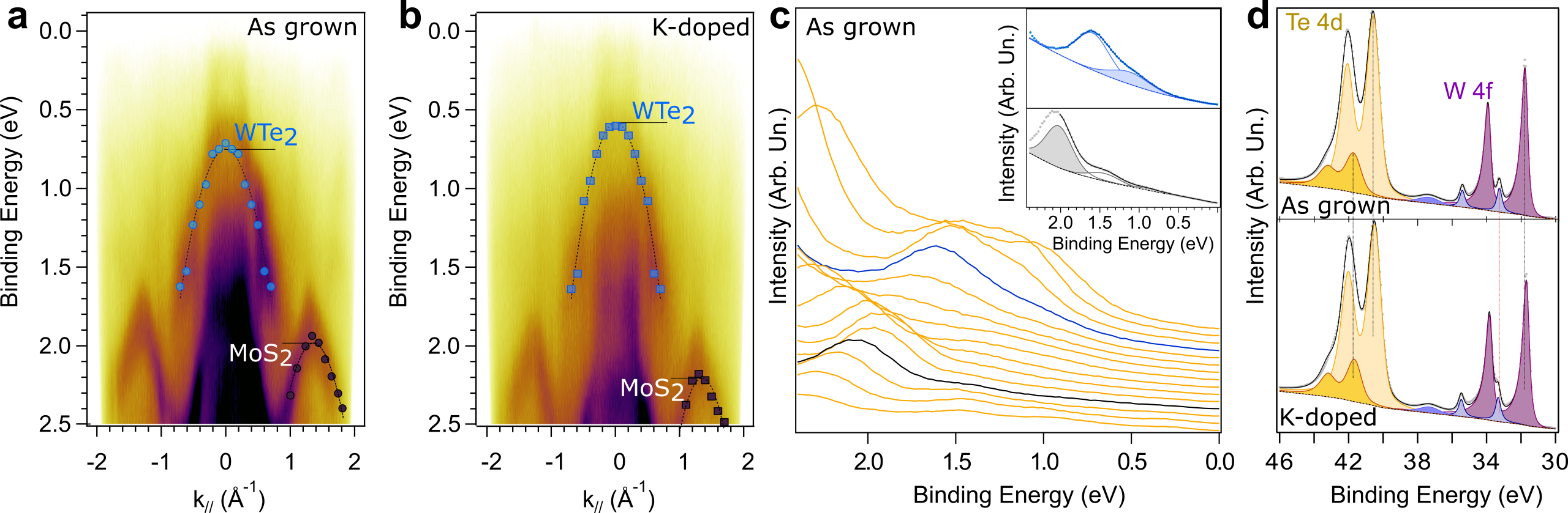 The strong electron-electron interaction in transition metal dichalcogenides (TMDs) gives rise to phenomena such as strong exciton and trion binding and excitonic condensation, as well as large negative exchange and correlation contributions to the electron energies, resulting in negative electronic compressibility (NEC). Here we use angle-resolved photoemission spectroscopy to demonstrate a striking effect of NEC in semiconducting TMD MoS2 on the charge transfer to and from a partial overlayer of monolayer semimetallic WTe2. By systematically monitoring the binding energy shifts in the valence bands of both WTe2 and MoS2 during surface transfer doping with donor (K) and acceptor (F4-TCNQ) species, we observe distinct behaviors: (1) for donor doping, increased MoS2 valence band binding energy is accompanied by a counterintuitive reduction in the binding energy of WTe2 valence bands and core levels; (2) for acceptor doping, the expected decrease in MoS2 binding energies contrasts with an unexpected increase in those of WTe2. The observations imply a reversal of the expected charge transfer; donor (acceptor) deposition decreases (increases) the carrier density in the WTe2 adlayer. The charge transfer reversal is a direct consequence of the NEC of the MoS2 surface layer, for which addition (subtraction) of charge leads to attraction (repulsion) of further charge from neighboring layers. These findings highlight the importance of many-body interactions for the electrons in TMDs and underscore the potential for exploring strongly correlated quantum states in two-dimensional semiconductors. [full article]